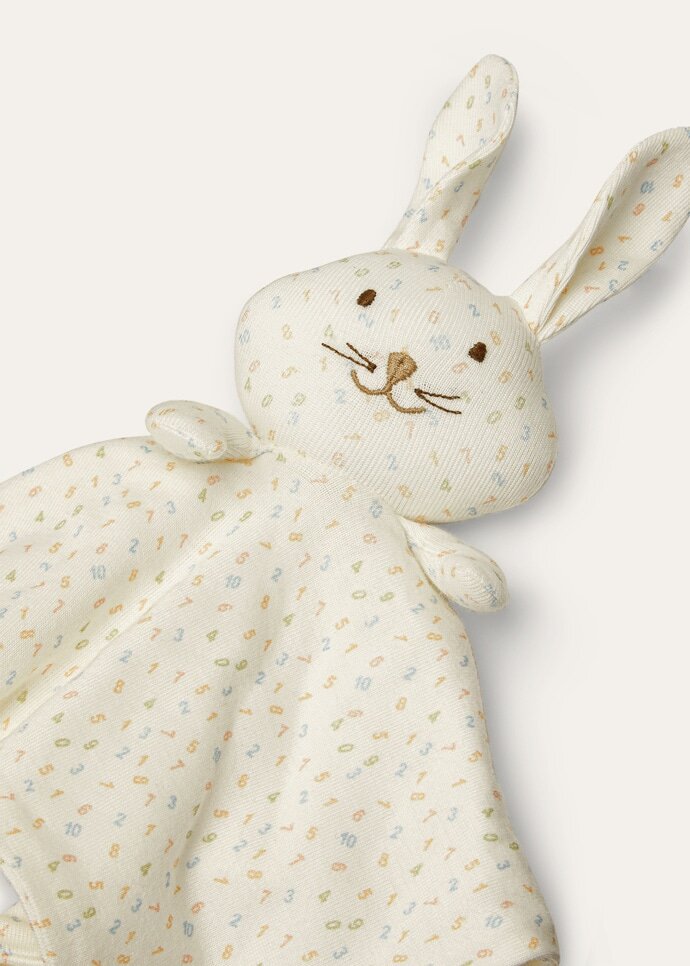 The Little Numbers Dou Dou is crafted in soft folds of beautiful fabric with an aura of whimsical cuteness. Nestled in a pyramid-shaped box secured with a leather clasp is an irresistible Dou Dou bunny, whose plush cotton jersey will delight little hands. Adorned with a charming print, this cuddly companion promises to soothe and delight.