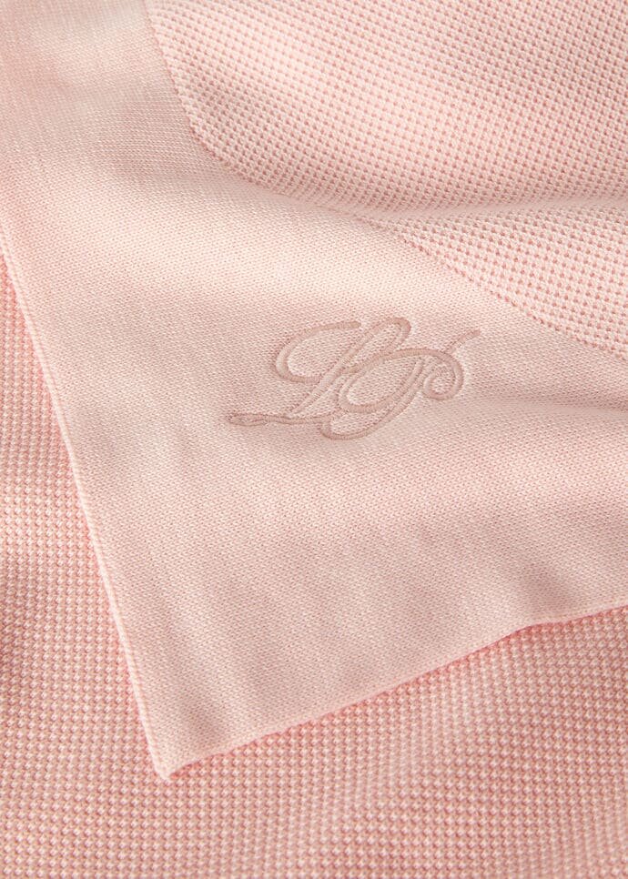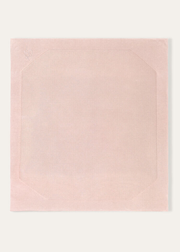 Blanket made from cotton yarn that is the result of a blend of luxury fibers. It features an extremely soft, lightweight weave, along with a honeycomb texture framed by thick trim.