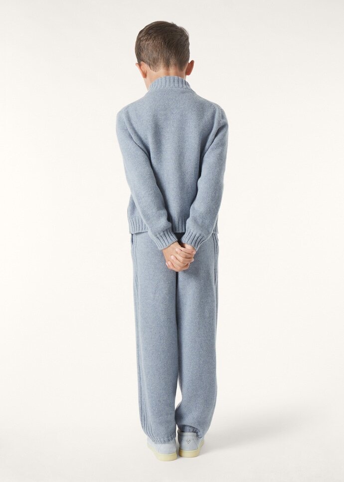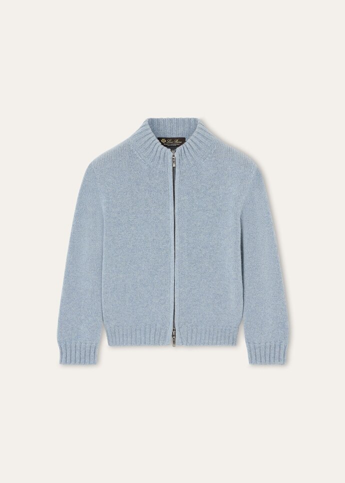 Strong fibers and fanciful craftsmanship combine in our children’s knitwear for an exquisite interplay of resilience and wonder. A classic children’s bomber jacket with iconic sporty sophistication, crafted from sumptuously soft baby cashmere in natural tones. The regular fit, set-in sleeves with shifted back shoulders and mock turtleneck collar mirror the men’s and women’s designs.