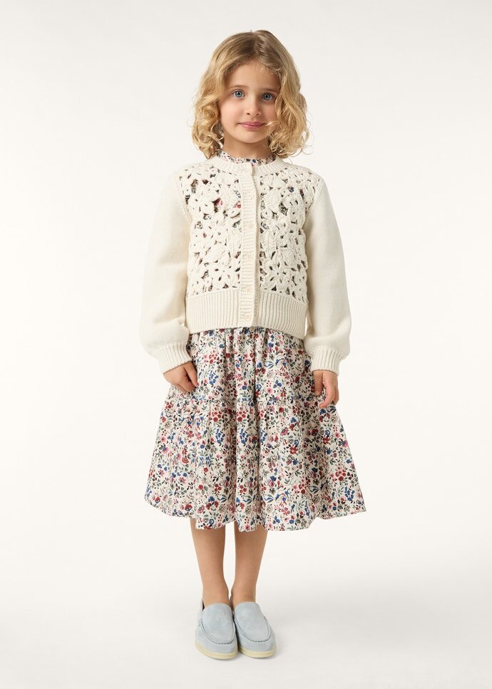 Intricate hand-crocheted foliage motifs bloom across the front of the Winter Garden cardigan, imbuing its soft cotton and cashmere fabric with textural interest. Framed by lightly ballooned sleeves, the design is ribbed throughout and fastened with mother-of-pearl buttons for a composed finish.
