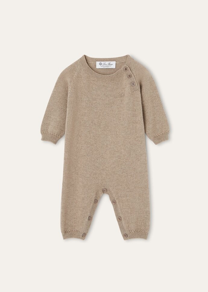 Lightweight, plain-knit Baby’s romper made from extremely soft, fluffy baby cashmere. The meticulously selected, luxury yarn embodies Loro Piana’s commitment to sustainability and respect for the environment, which has always been a hallmark of the brand when it comes to the research, development and processing of raw materials. This comfortable style features an embroidered LP monogram on the chest.