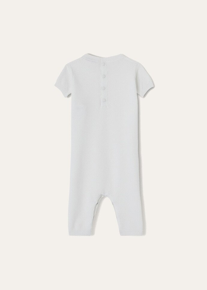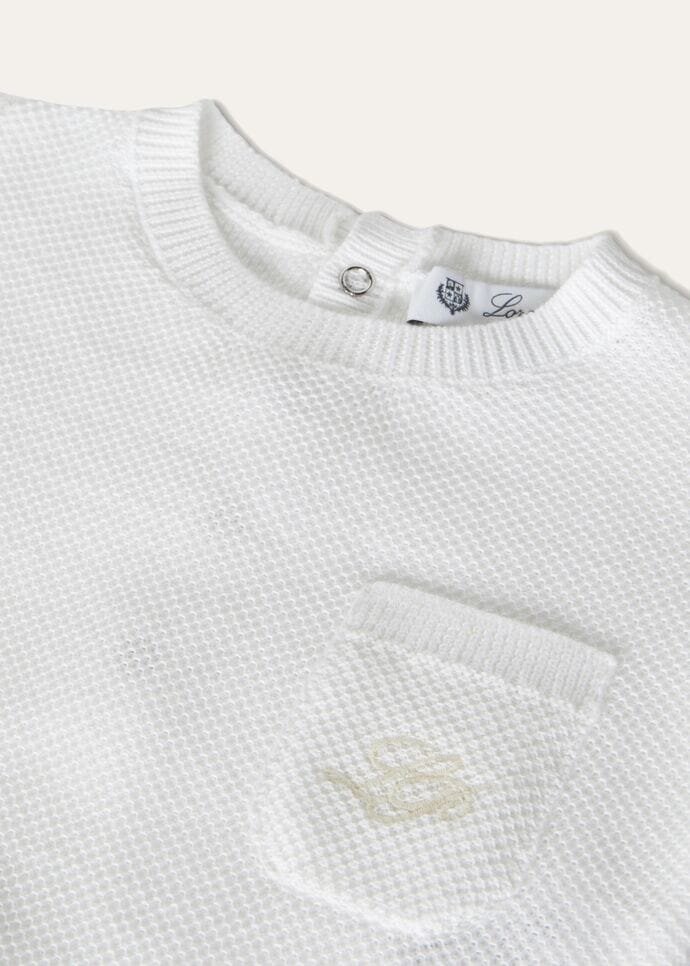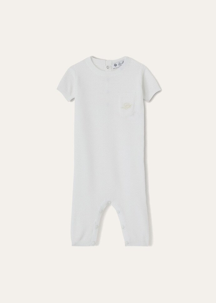 Baby’s romper made from cotton that is the result of a blend of luxury yarns. This comfortable style features an extremely soft, lightweight weave, along with an embroidered LP monogram on the breast pocket.