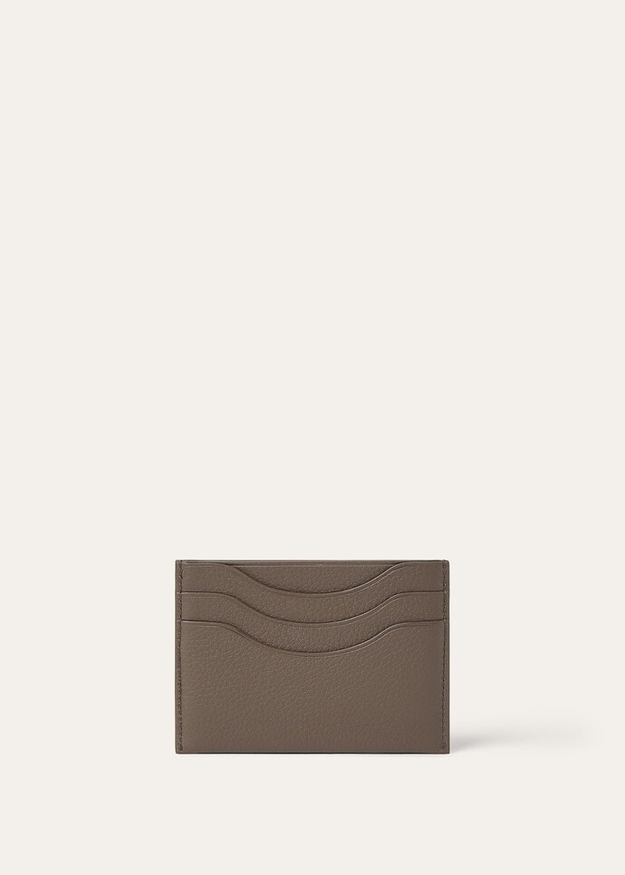 A stylish cardholder, meticulously crafted in exclusive calfskin leather, with three open slots featuring a unique wave design. This sophisticated accessory stands out as a discernible symbol of luxury, with the butter-soft leather expertly treated to enhance its natural grain. Add a touch of opulent sophistication to your everyday accessories.
