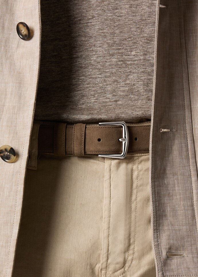 Men’s classic and informal belt in soft Alsavel calfskin. Palladium-finish metal buckle customized with the Loro Piana logo.