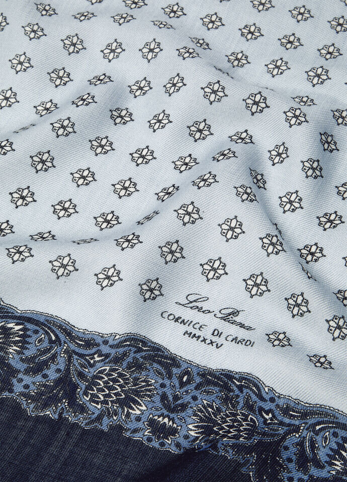 The Loro Piana foulard reflects the Maison’s rich heritage, beautifully complementing any ensemble with understated finesse. A true collector’s masterpiece, this sophisticated square scarf is crafted in luxurious wool and adorned with an exclusive print. The timeless design of the print features tiny stylized flowers resting on a monochrome veil of color, creating a clean, elegant motif of unparalleled versatility.