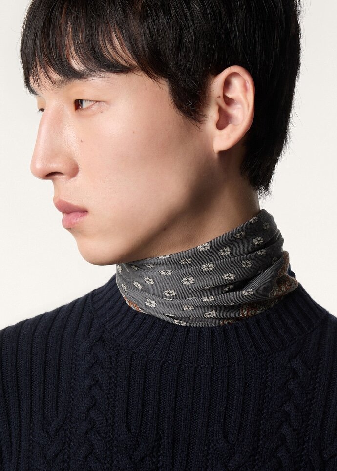 The Loro Piana foulard reflects the Maison’s rich heritage, beautifully complementing any ensemble with understated finesse. A true collector’s masterpiece, this sophisticated square scarf is crafted in luxurious wool and adorned with an exclusive print. The timeless design of the print features tiny stylized flowers resting on a monochrome veil of color, creating a clean, elegant motif of unparalleled versatility.