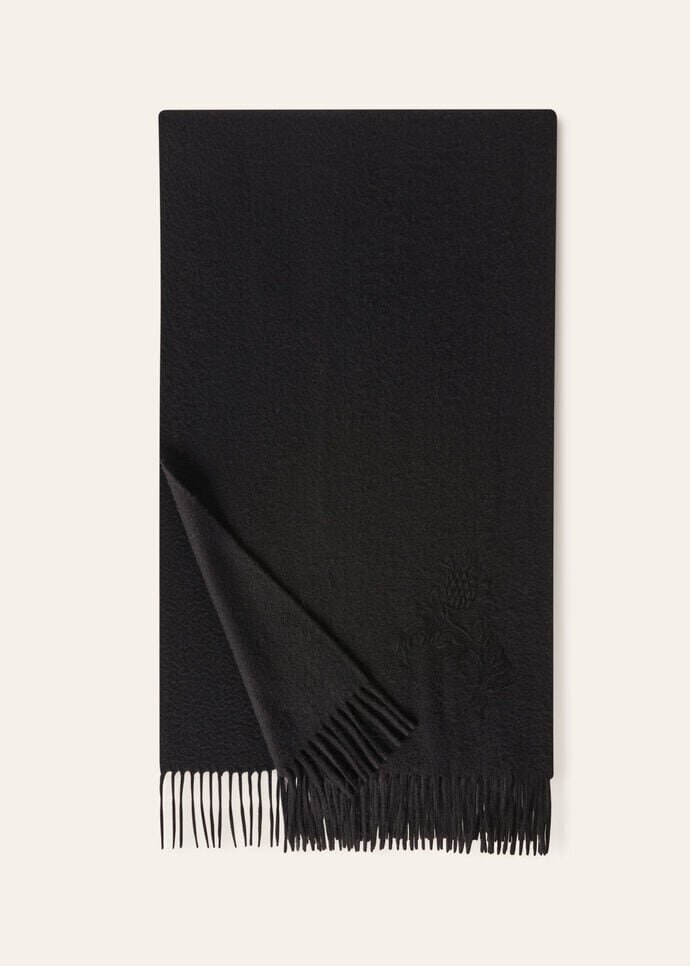 Designed to crown your finest ensembles, the Grande Unita scarf is the prelude to starry soirées and unforgettable nights. A classic Loro Piana design, the scarf is reimagined with the addition of tonal cashmere thistle embroidery. This subtle embellishment transforms the piece into a canvas of refinement, each thistle a testament to the collection’s commitment to understated luxury.