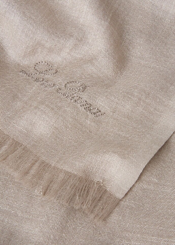 Reveal the extraordinary in the ordinary, and with each finely crafted stitch, weave a tapestry of beauty that transcends the everyday. Wrap yourself in the subtle sophistication of our silk and linen scarf, delicately crafted with a slubbed effect. This versatile accessory effortlessly complements an array of ensembles, adding a touch of sophisticated elegance to your everyday style.