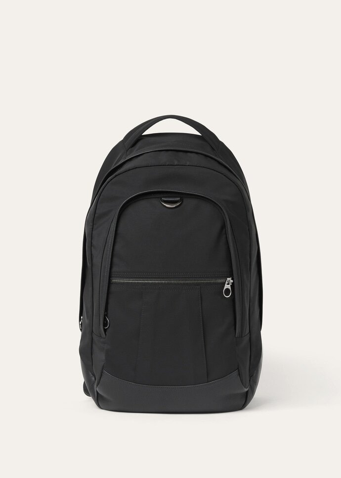 A simple and functional backpack designed for those who refuse to compromise on an elegant and classic look, while maintaining a sporty touch through the combination of two materials: 20k and tender calf. It features a double compartment design, with meticulous attention to detail, including a dedicated laptop pocket inside and a travel strap which allows to conveniently fix the bag onto a suitcase.