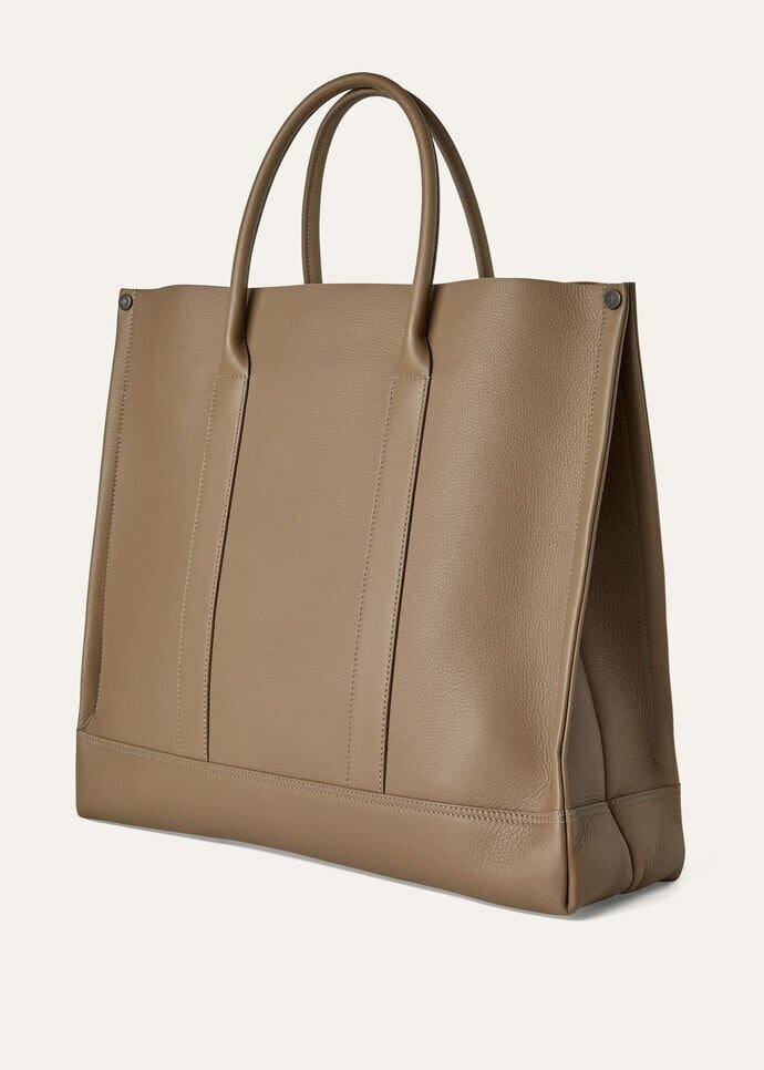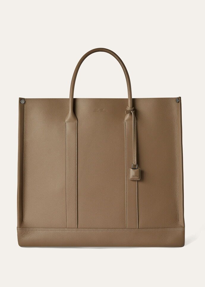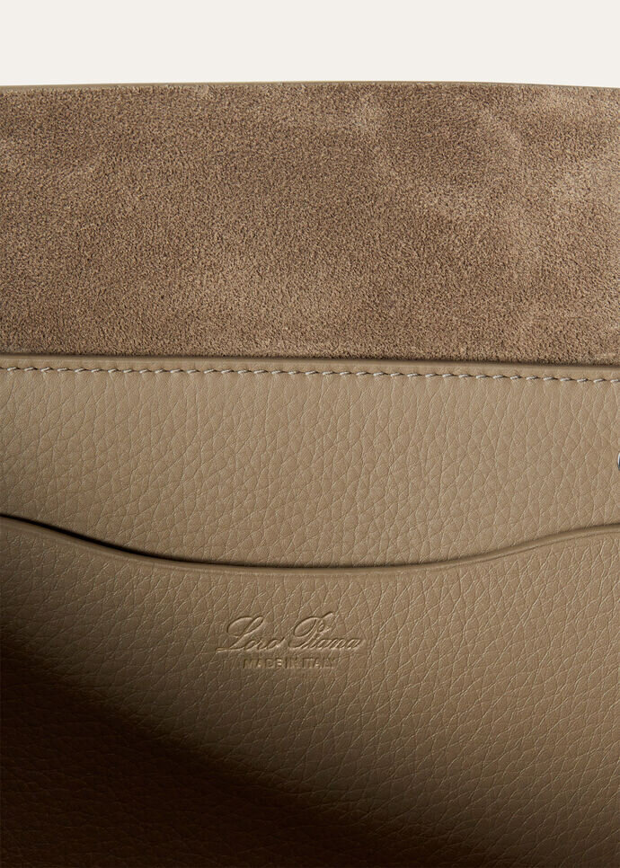 The large Beam tote bag combines practicality and refinement, with its spacious design and soft calfskin leather evoking luxury. Named after the beam, an essential part of the loom, this bag pays homage to Loro Piana’s rich textile heritage. Its expandable base, inspired by the shape of the beam itself, allows for adaptable volume and versatility, while the contrasting soft calfskin trim and handles add a touch of luxurious sophistication.