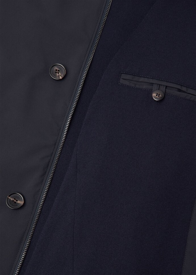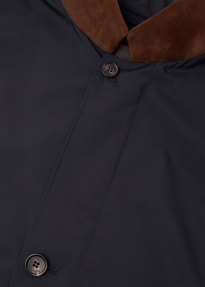 Crafted from Windmate® with a layer of weather-resistant Storm System®, the Sebring coat offers refined protection and style. Its standing collar, lined in suede underneath, can be turned down to evoke the elegance of a tailored jacket. Inside, a knitted cashmere lining provides enveloping warmth.