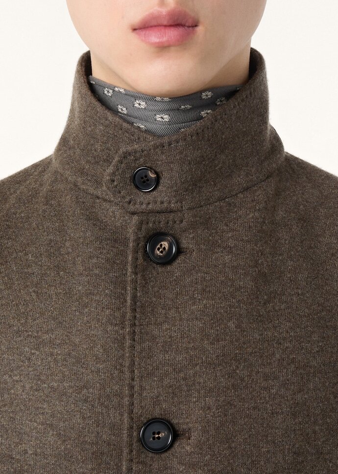 Casual coat crafted from our iconic double cashmere Jersey Novalis. Light yet warm, with a natural stretchiness, this delightfully soft fabric and stylish straight cut are designed to gently envelop the wearer. Ideal for leisure time in the city.