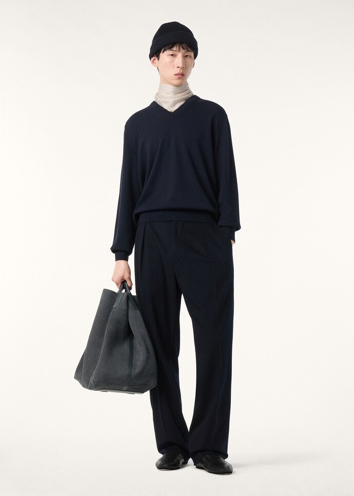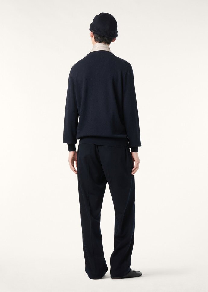 This baby cashmere V-neck is strongly representative of Loro Piana’s commitment to excellence and one-of-a-kind style. The delicate, fine fibers are crafted using meticulous techniques to enhance their inherent light weight. Thanks to a comfortable, slightly oversized fit across the torso, shoulders and armholes, it is perfect to wear under a jacket. Baby cashmere sweaters can be worn at any time of day and on any occasion, thanks to their unparalleled softness.