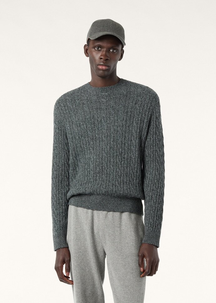 Gathered just once from each infant Hircus goat, Baby Cashmere embodies nature’s fleeting perfection—a cloud-soft whisper of unparalleled luxury. This long-sleeved crewneck sweater wraps the wearer in this special yarn, its cable pattern adding rich texture and visual interest. The more fitted cut and classic design make this a versatile staple.
