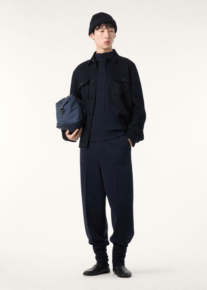 Softly enveloping, the Tyne sweater is knitted in superfine cashmere using an array of stitches in a delicate interplay of texture and tonal depth. The chainette yarn used is spun using a special technique, creating a soft and supple hand. Ribbing at the shoulders, hem, and cuffs frames the silhouette on a final note of definition.