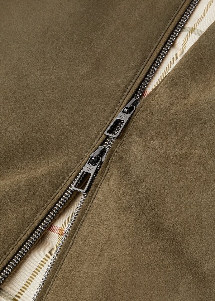 The supple leather of the Loro Piana Ivy bomber will help you through the winter chill and the gentle thaw of spring, serving as a faithful companion through the changing seasons. Inspired by the iconic technical fabric bombers of the past, this design in the finest water-repellent suede features a college-style collar with lightweight padding that enhances the inherent softness of the leather. The clean lines and minimalist design of this piece allow the beauty of the material to shine through.