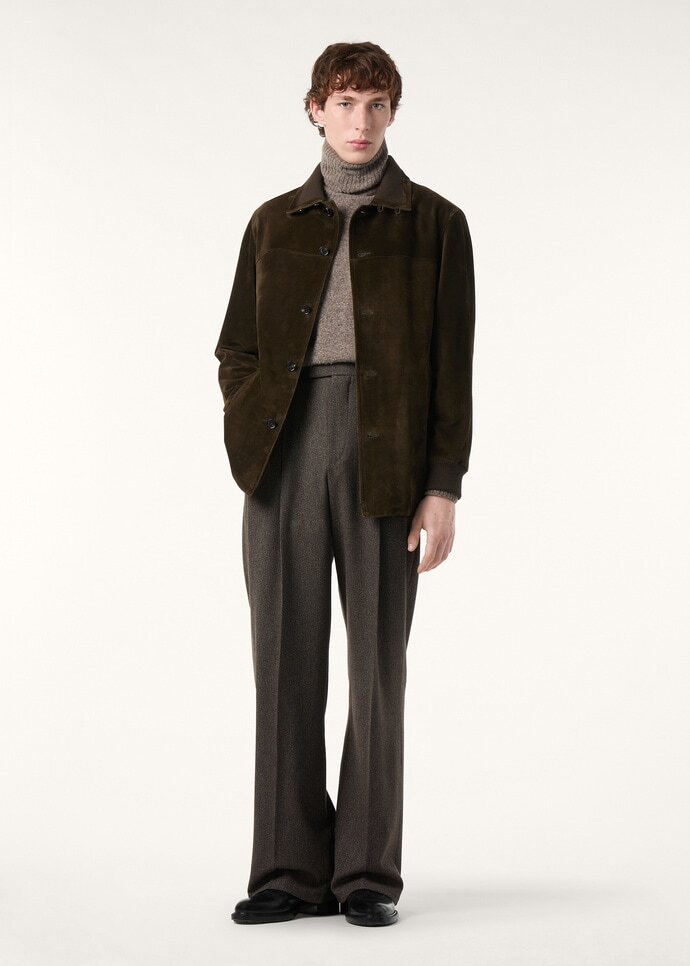 A refined interpretation of the country jacket through the lens of an archival garment, the Maremma from the Loro Highlands Capsule collection is steeped in heritage, its name referencing the eponymous region in Tuscany. Crafted from soft calfskin suede – each piece perfectly proportioned to match the size of the hide – it has an exquisitely soft hand and offers an impeccable fit. The rib-knitted cashmere trim adorning the collar, underarms, and inner cuffs retains a signature detail first seen in the original.