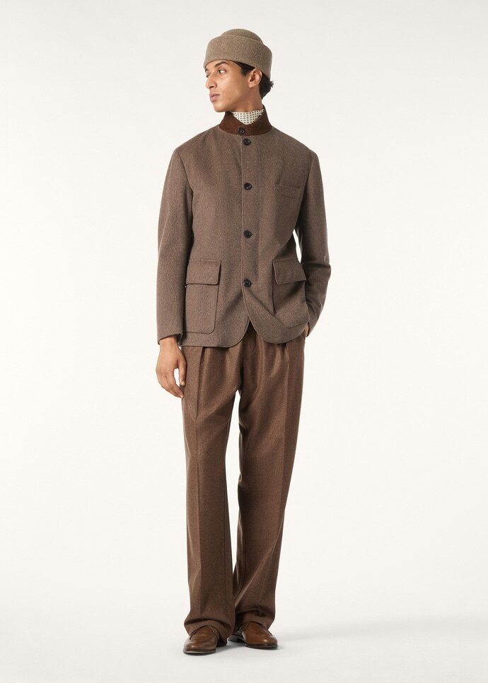 Traversing the realms of tradition and innovation, we arrive at the Roadster jacket, an icon that embodies the ethos of Loro Piana. An homage to the 75th anniversary of the Villa d’Este Concorso di Eleganza, our iconic jacket is crafted from Storm System®-treated cashmere in a more fitted line than the original. While retaining its distinctive aesthetic, flat pockets without pleats add a refined lightness, making it the ideal overjacket for exquisite sophistication.