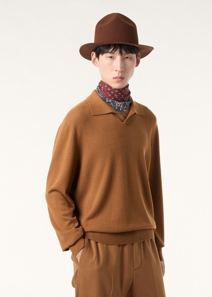 Woven from the celestial “fiber of the gods”, whose exceedingly rare, cloud-like strands once adorned only Inca royalty, the Classic polo shirt in vicuña yarn reverently revives an ancient treasure. Knitted with a medium-weight hand, this regular-fit piece epitomizes timeless distinction with its crisp yet casual silhouette. Perfect for sophisticated layering or standing alone.