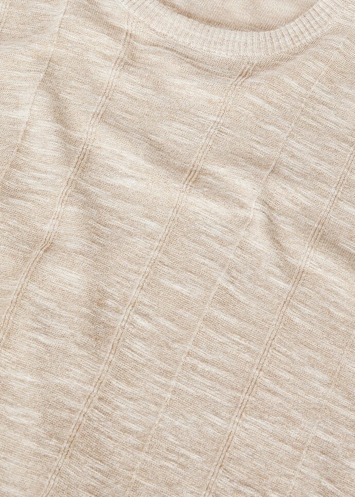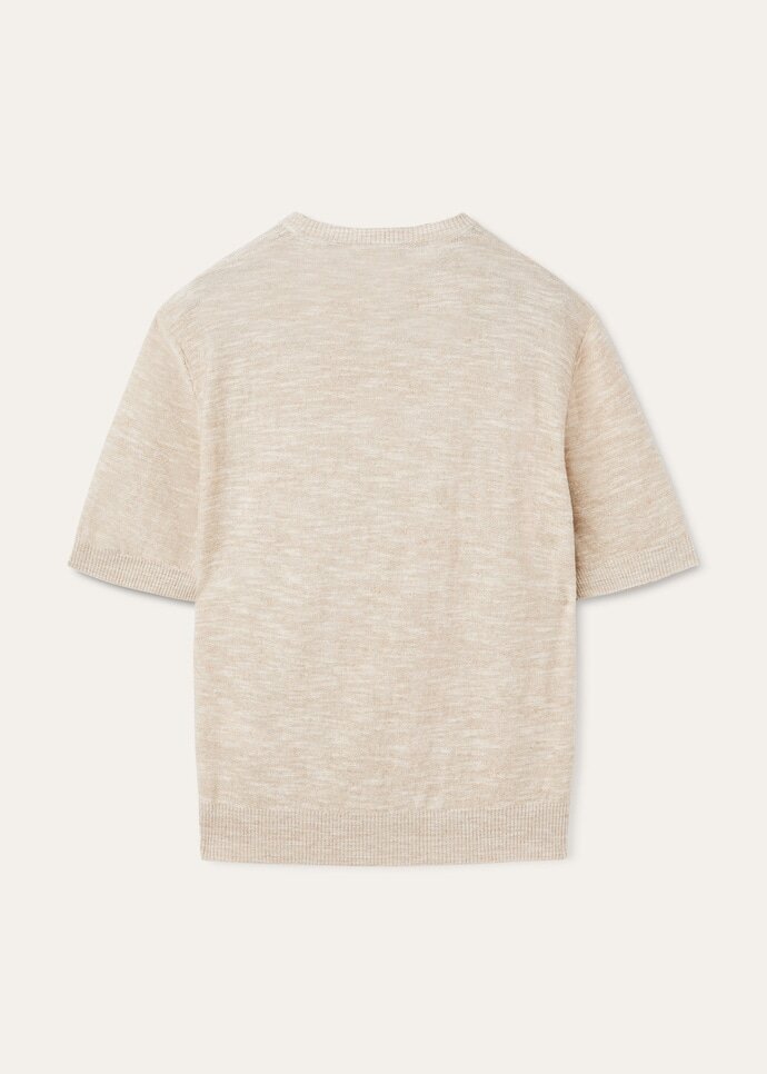 In the salty air where coastal flora thrives, softly woven linens resonate with the vibrant colors of nature. Irregular ribbing contrasts with the straight shoulders of this linen and silk blend crewneck shirt, adding visual texture to the front and versatile depth to contemporary outfits. The relaxed silhouette promises versatility and easy sophistication.
