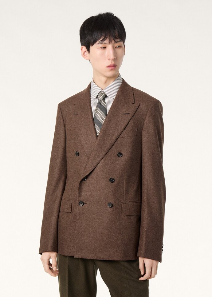 Honoring classic tailoring codes, with hand-finished details, the Milano blazer is a signature silhouette crafted as an homage to the elegance of Sergio Loro Piana. It is rendered in Wish® wool flannel with a hint of sumptuous cashmere – and traced with a melton undercollar, canvas accents on the lapels, and a cotton insert along the hem for full-bodied shape.