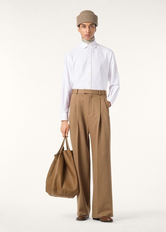 The timelessness of the Elia shirt lies in its fusion of time-honored tailoring and contemporary ease. Classically cut, it is framed with a rounded collar delicately embroidered with eyelets to accommodate a pin. It is cut from Heavy Oxford, made from pure cotton with a washed effect for a softened, relaxed look.