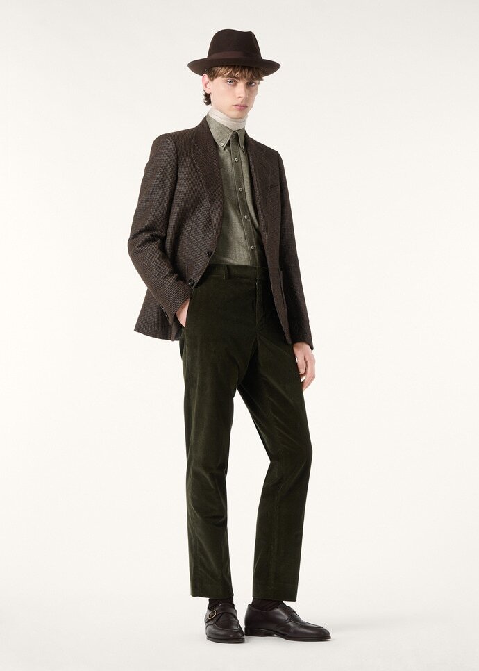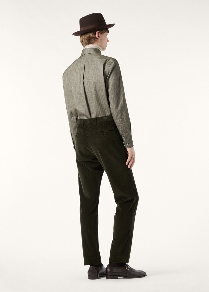 Refined and versatile, the Elia shirt combines the classic fit of the André shirt with a button-down collar. It is woven from Ginestra shirting cloth, a classic Loro Piana flannel fabric made from cotton and finished with a herringbone weave.