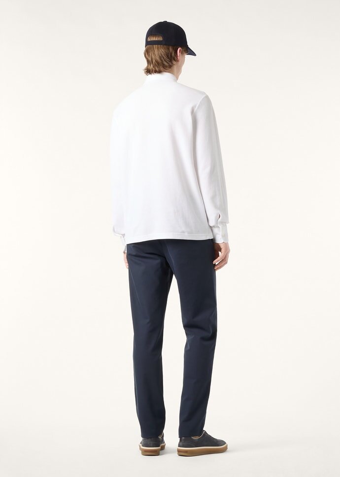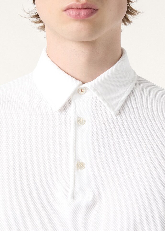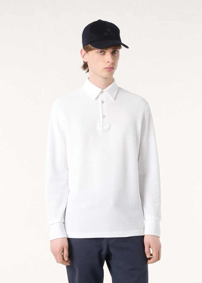 Long-sleeved polo shirt in honeycomb piqué cotton. A very versatile casual wardrobe essential, perfect under a jacket or with a casual trouser.