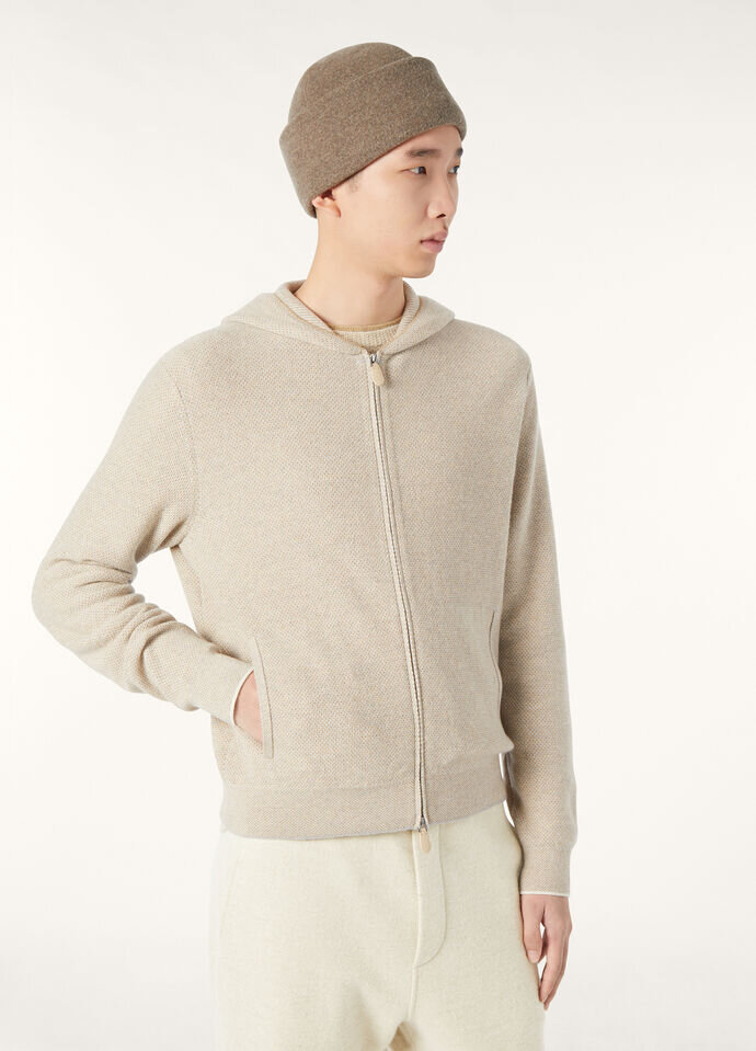 The Varallo bomber artfully guides you through the transition of the seasons, draping you in refined luxury as the world emerges from its wintry slumber. This regular-fit garment, with its zip-up hood and inseam pouch pockets, is woven in a three-color honeycomb jacquard for a subtle, three-dimensional effect. Pair this unique piece with your favorite jeans.