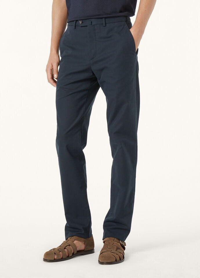 Ultra-soft cotton pants with a touch of stretch. Flat fronted and garment dyed, for an impeccable finished look. Team this versatile casual staple with a jacket or outerwear for contemporary outfits with effortless polish.