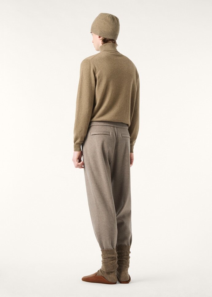 Fusing refined fabrics with a relaxed form, the Tamigi pants are crafted from Merino wool jersey with a fleece-like finish that feels silky-soft against the skin. The minimal line is elevated with a tailored front opening for a hint of polish. Inside, a wool drawstring and elasticated side inserts allow for adjustable comfort.