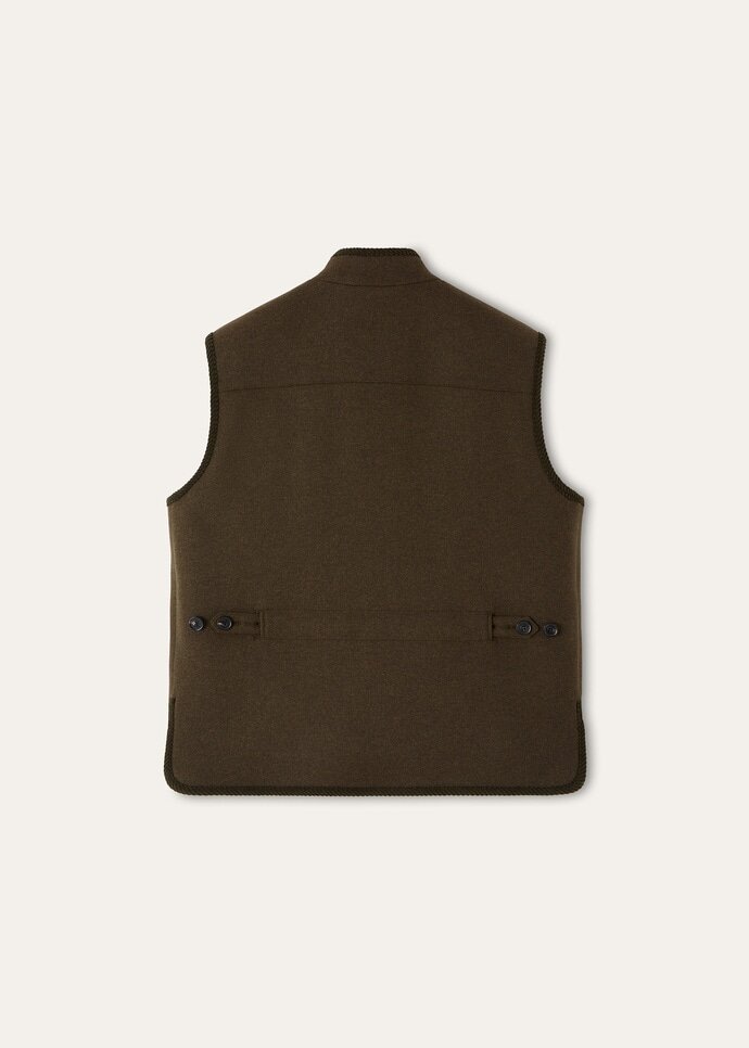 A versatile layer for transitional days, the Kelvin vest blends practical ease with understated refinement. It is rendered in Wish® wool with touches of cashmere, felted together to offer gentle structure and a supple, sensorial hand. Shaped with an upright collar, it is fully lined in Australis® corduroy, which extends to the neckline. Practical details such as a half belt at the back and Sergio horn buttons finish the piece with considered polish.
