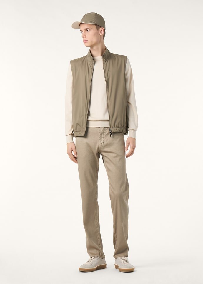 This sleeveless version of the iconic Loro Piana reversible bomber is designed for seamless layering. Featuring an outer in wind stretch Storm System® microfiber and Wish® wool inner, it is exceptionally lightweight but delightfully warm with a classic close fit that makes it perfect for wearing on its own or under an outer layer without creating a bulky silhouette. Split pockets add further practicality, while the upright collar provides additional protection from the wind.
