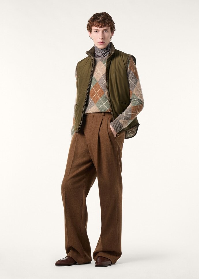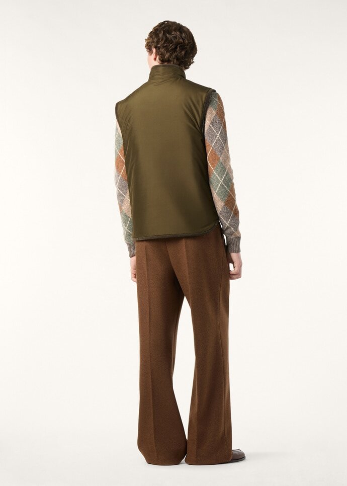 A versatile essential for all seasons, the Randy vest blends practicality with refined comfort within the Loro Highlands Capsule collection. It features a Silk Tech Storm System® exterior – a luminous silk fabric sealed with a weather-resistant membrane – and a sumptuous wool and cashmere cloth interior patterned with a tartan check. Shaped with a standing collar, it is edged with soft corduroy along the collar and hem.