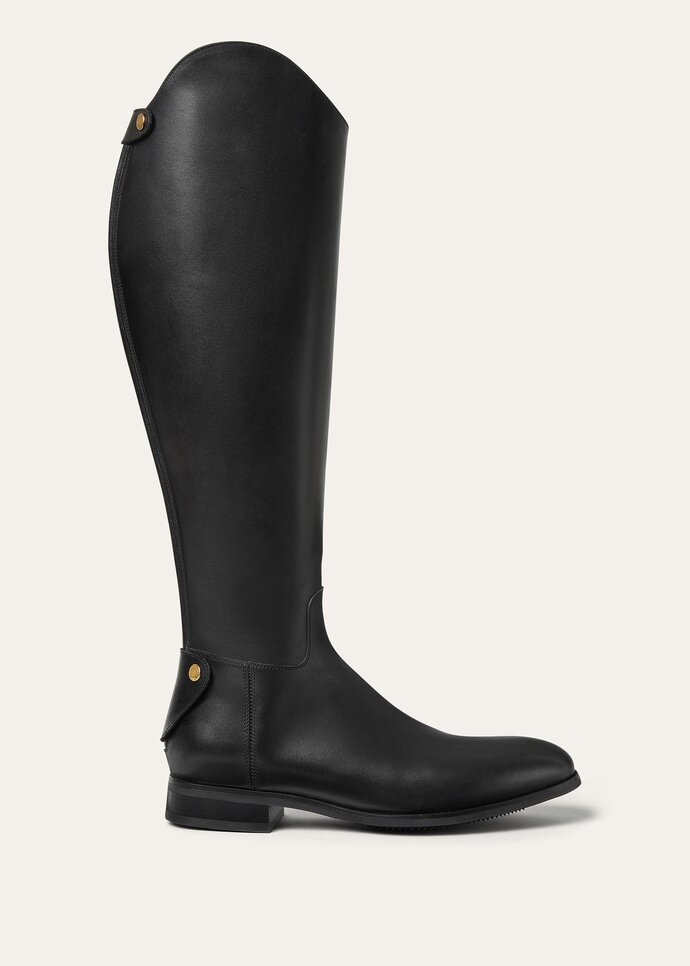 Cut from smooth nubuck calfskin with a soft touch, the Horseriding High Boot from the Loro Highlands Capsule collection takes its cues from classic equestrian styles. It is defined by a sculpted upper that rises higher on the outer leg, offering support and definition with every stride. Considered details – from the leather tabs that fasten over the zip to the supple leather lining – finish the piece with pragmatic refinement.