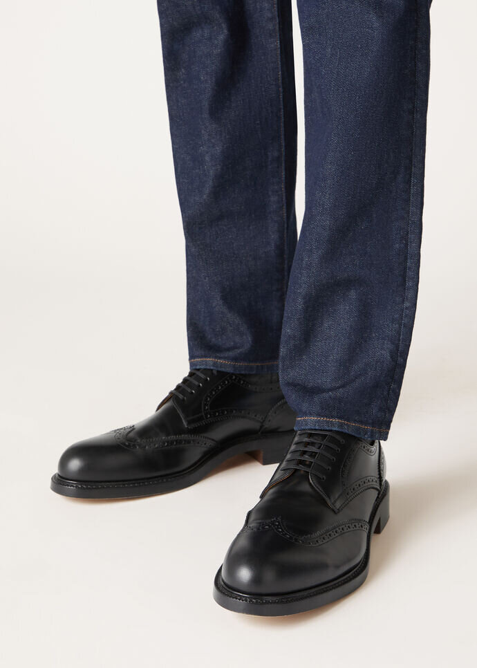 Classic lace-up shoes, meticulously crafted from soft yet durable calfskin with exquisite perforations and broguing. Constructed using the prestigious Goodyear process, these shoes offer unparalleled durability, water resistance and comfort, ensuring a luxurious wearing experience that lasts. With the added benefit of replaceable soles, these shoes can be enjoyed for years to come without compromising their structural integrity.