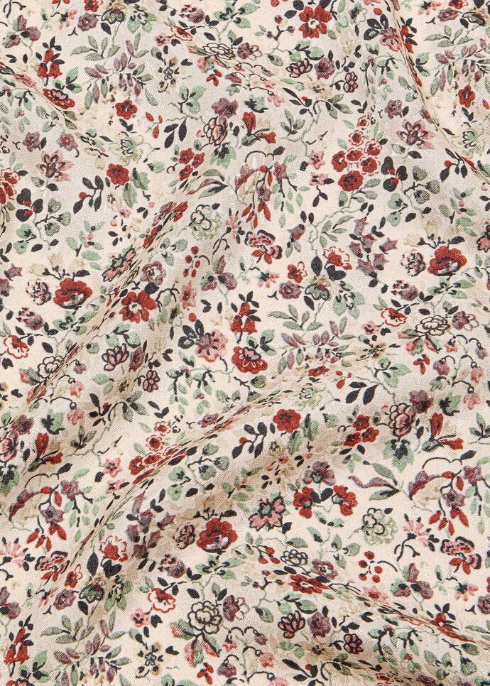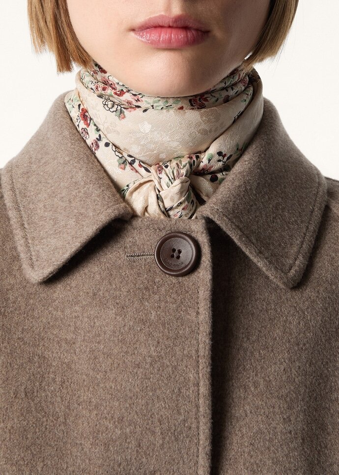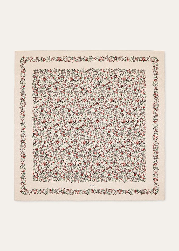Timeless and intricate, the Arundel Gardens foulard captures the botanical elegance of its delicate motif through a layered interplay of print and jacquard. The floral pattern reveals a gentle duality – warm hues across the surface, offset by the cooler tones of the backdrop – creating a sense of movement and depth. The piece is meticulously finished with hand-stitched hems.