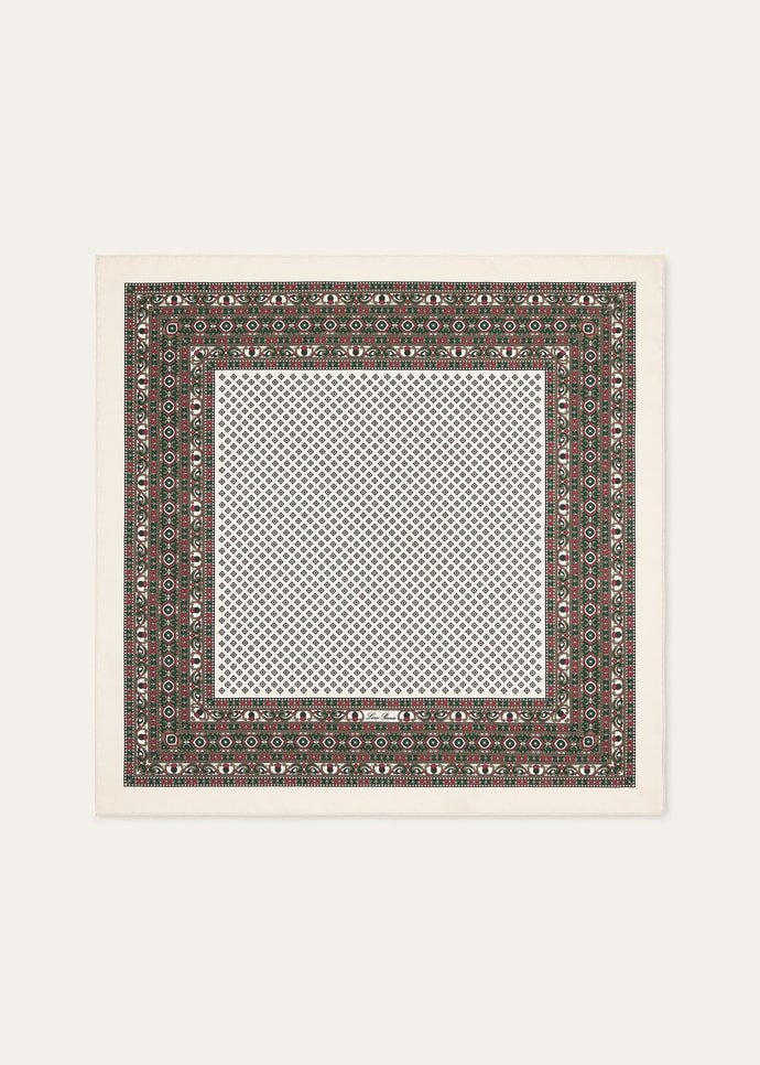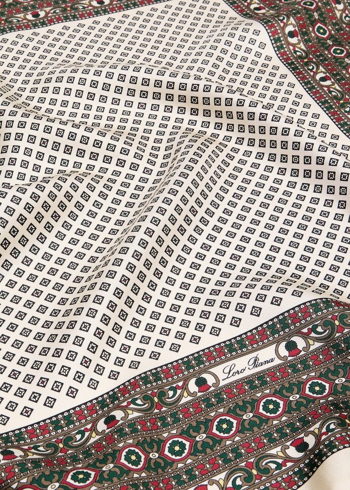 Inspired by the same-named province in a nod to the collection’s Argentinian inflections, the Chaco Border foulard in silk twill blends classic character with nuance. It sees graceful thistles frame a delicate diamond pattern at the center – casting a geometrically balanced composition. In classic muted colors, it is the perfect finishing touch to the silhouette.