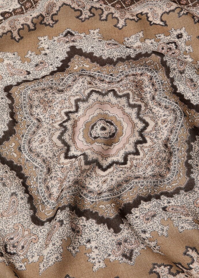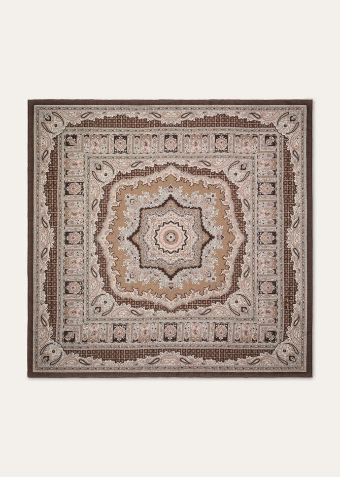 Replete with visual and tactile nuance, the Floral Majolica foulard is printed on both sides with an archival-inspired motif enriched by classic paisley accents. It is spun from pure cashmere, carefully worked in a diagonal weave to create a sophisticated mélange effect that lends depth and dimension. Finished with hand-rolled hems, it adds a polished accent when tied around the neck or to a bag.
