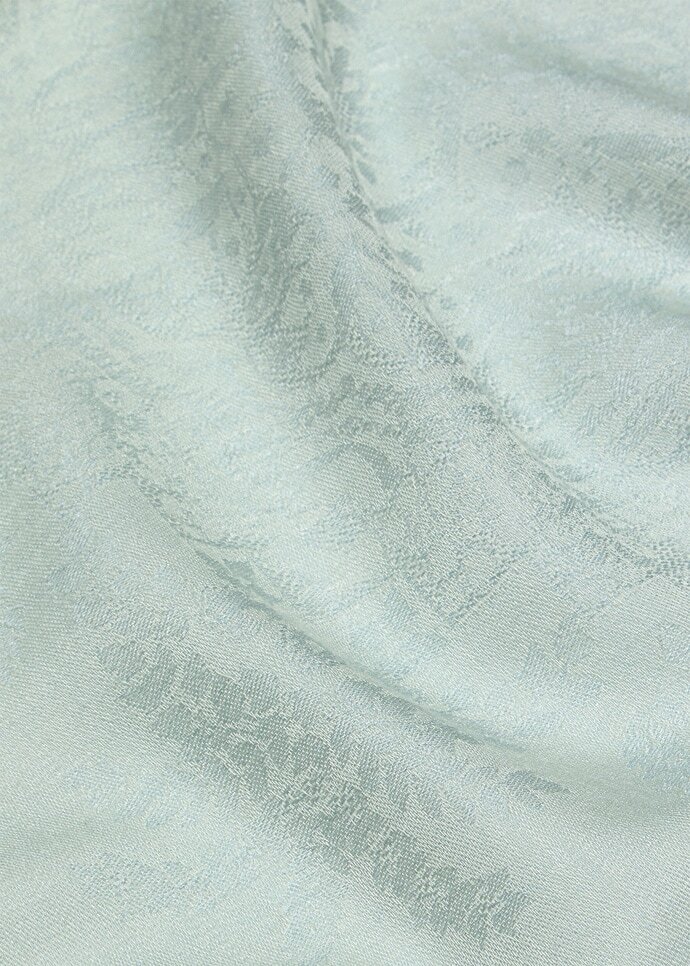 The elegance of Indian tapestry lends a sense of timeless beauty to the Punjab foulard, where paisleys and blooms emerge from the center in balanced symmetry. Screen-printed with fine precision, the design reveals layered details and subtle linework that evoke the character of hand-drawn textile art. The accessory is jacquard-woven from a featherlight blend of cashmere and silk – an elevated canvas for the refined complexity of the motif.