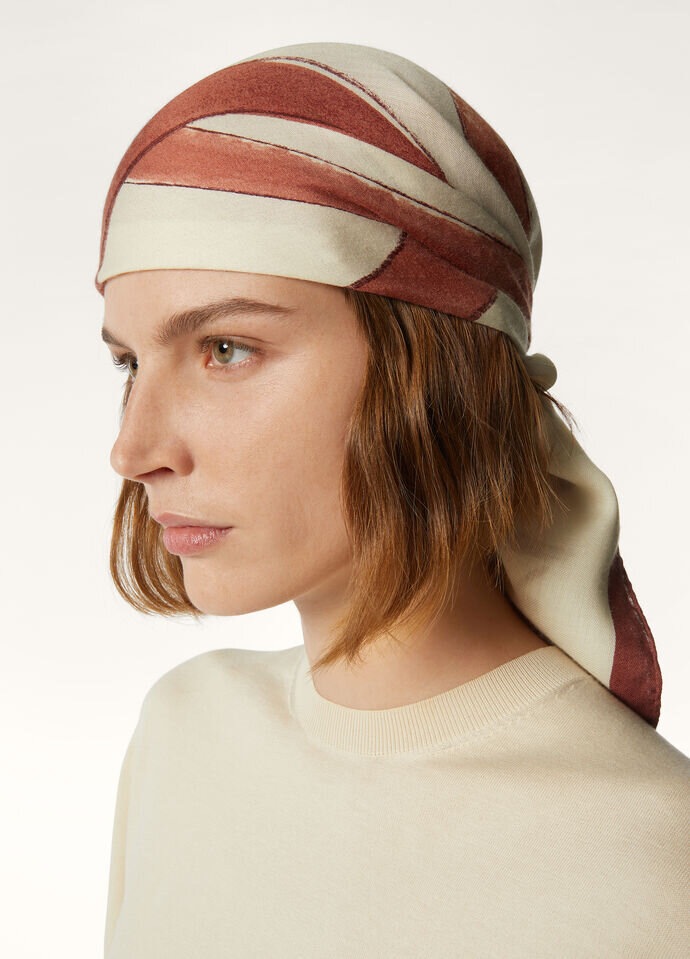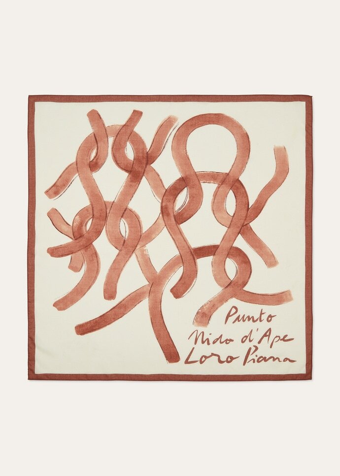 The Punto Nido d’Ape foulard is an ode to the artistry of knitwear. Crafted from an exquisite blend of extra-fine Cashmere and silk, it lends a luminous sheen and enveloping softness. It features a rich motif, printed in seven colors with a watercolor effect and depicting an intricate honeycomb stitch – a tribute to nature’s geometric perfection. Interwoven threads evoke hand-painted brushstrokes, capturing the essence of time-honored craftsmanship.