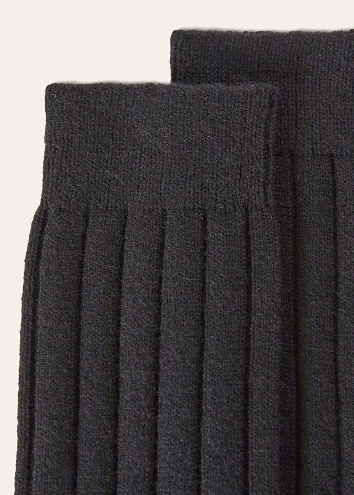 Ankle socks made from extremely fine knit baby cashmere The weave is defined by thin ribbing and a delicate, perforated, multi-colored jacquard motif, providing a texture that is pleasantly soft and warm to the touch.