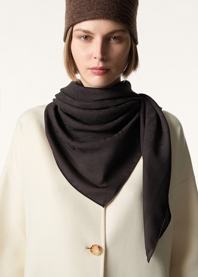 Visually intricate, the Floral Majolica foulard is distinguished by an archival-inspired motif featuring classic paisley accents. Rendered in elevated silk crepe, this accessory feels crisp and fresh, serving as a polished accent – ideal for tying around the neck or adorning the handle of a bag.
