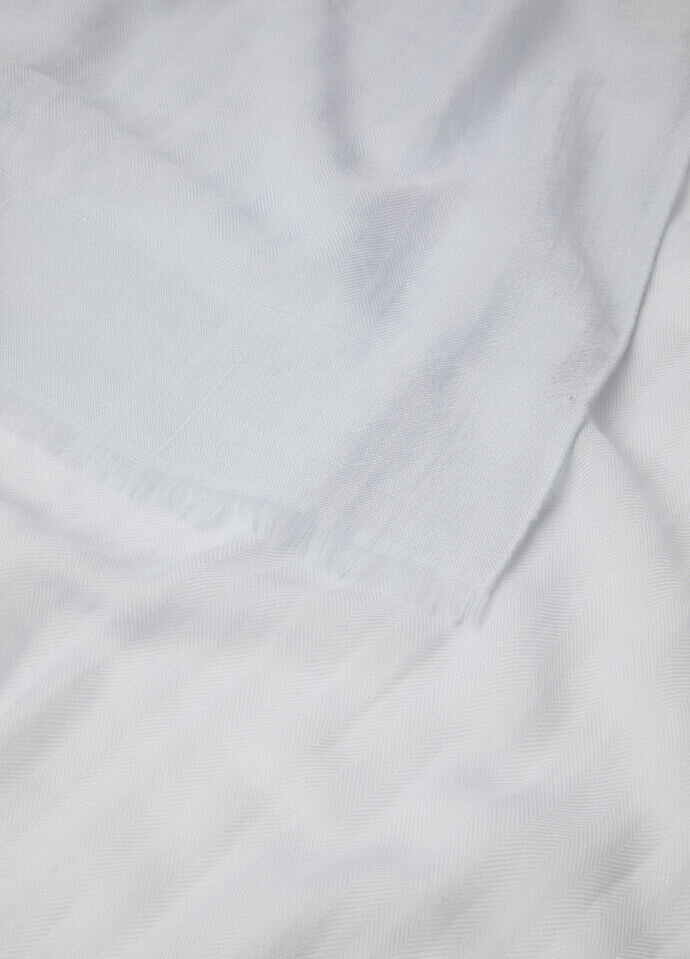 Indulge in luxury with our maxi stole, expertly crafted in jacquard-woven cashmere using the finest fibers for exquisite softness and warmth. A harmonious pattern of different weaves accentuates the Crest logo and stripe motif, creating a distinctive accessory that complements a variety of garments. Cloak yourself in opulence with this statement piece.