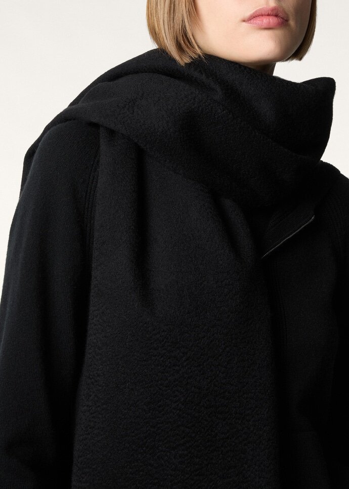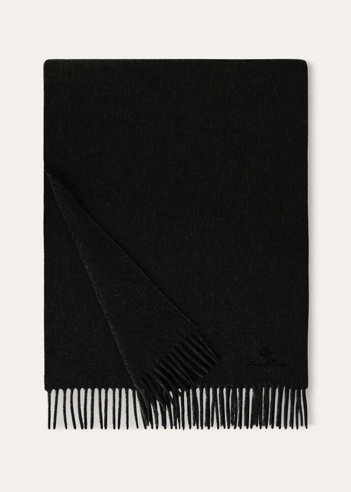 Classic cashmere stole with exclusive Loro Piana “frisson” finish, which gives the fabric sheen and adds luminosity to the colours. Ideal worn as a wide scarf wrapped softly round the neck or as a shrug.