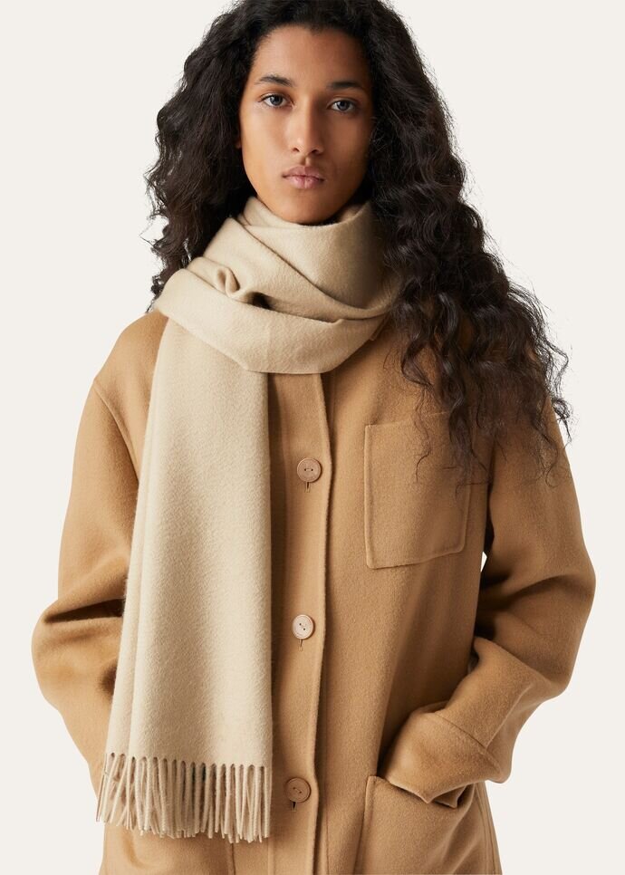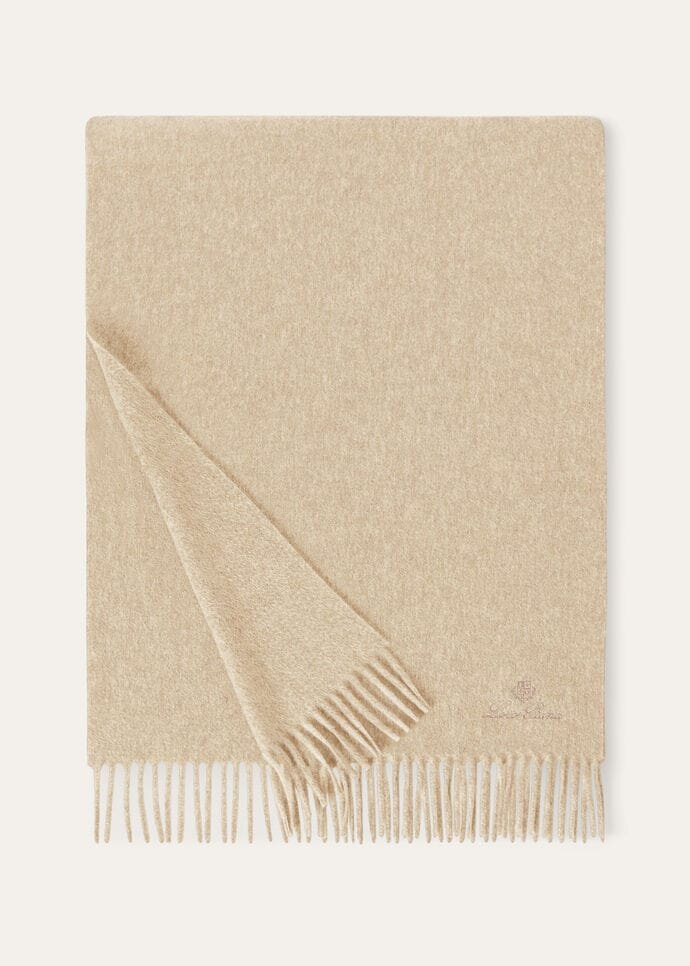 Classic cashmere stole with exclusive Loro Piana “frisson” finish, which gives the fabric sheen and adds luminosity to the colours. Ideal worn as a wide scarf wrapped softly round the neck or as a shrug.