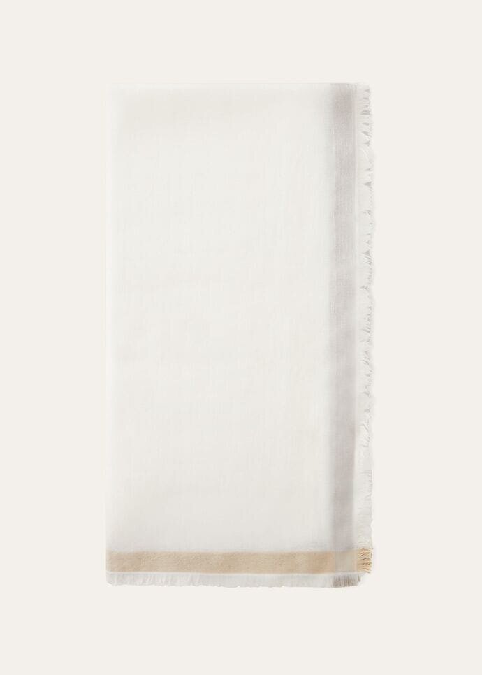 Large scarf in Soffio cashmere and silk yarn, in a light colour framed with contrasting bands of silk. The square shape guarantees versatile styling to create an endless variety of looks.