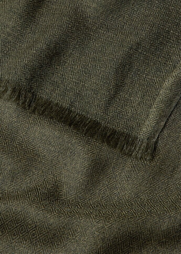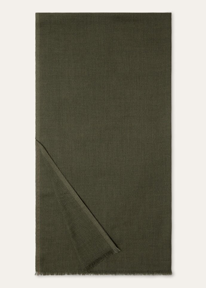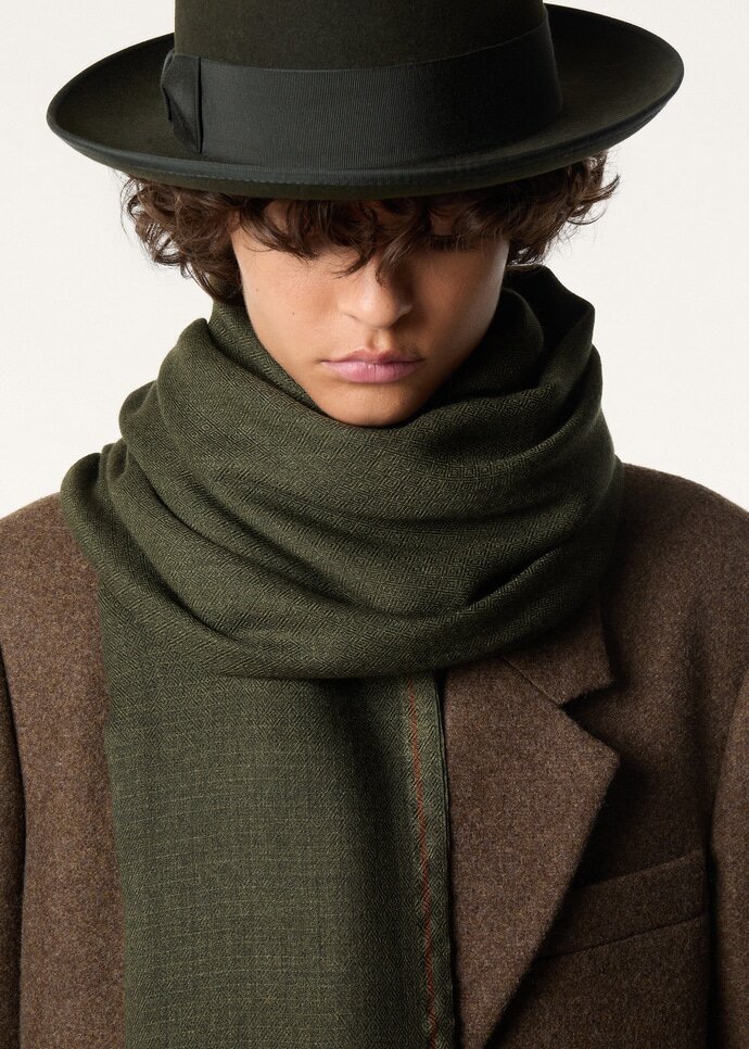 In the grand tapestry of the collection, accessories are the golden threads that weave together past and present, each subtly symbolizing the brand’s century-long commitment to uncompromising elegance. Crafted from a rich blend of cashmere and silk, this maxi stole feels like a whisper of indulgence against your skin. Decorative kummel stripes along the long edges bring a touch of decorative grace.