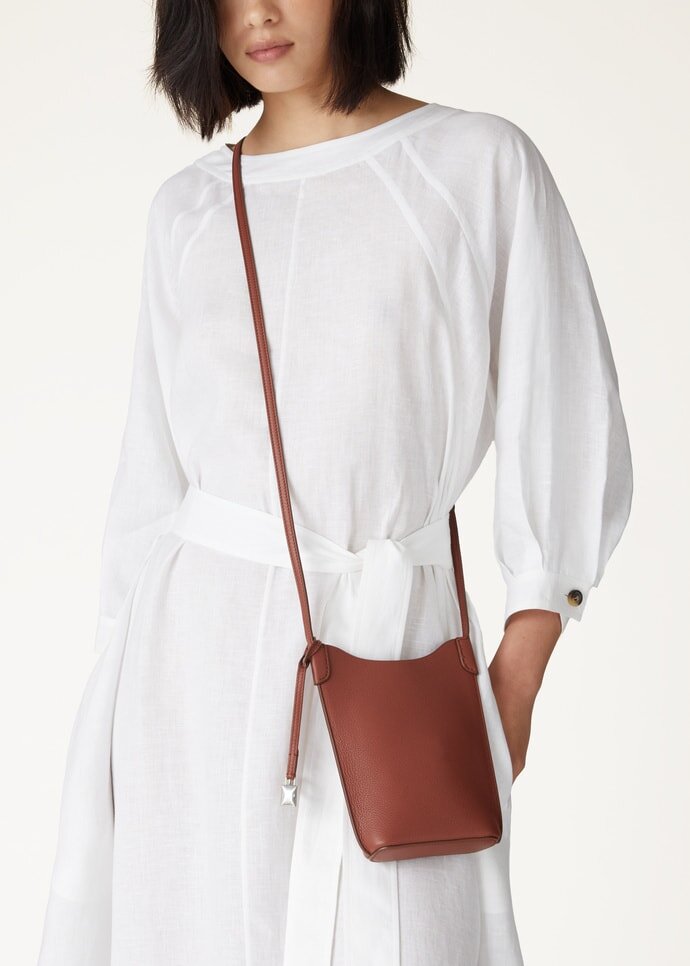 Like strokes on a canvas, accessories reflect our inner artist, from bold statements to subtle nuances, each a tribute to our unique selves. Echoing the braided handles of the Bale, this crossbody phone case in supple tumbled calfskin brings signature refinement to personal on-the-go tech protection. Card slots are discreetly tucked away at the back, while optional My Charms offer a custom touch.