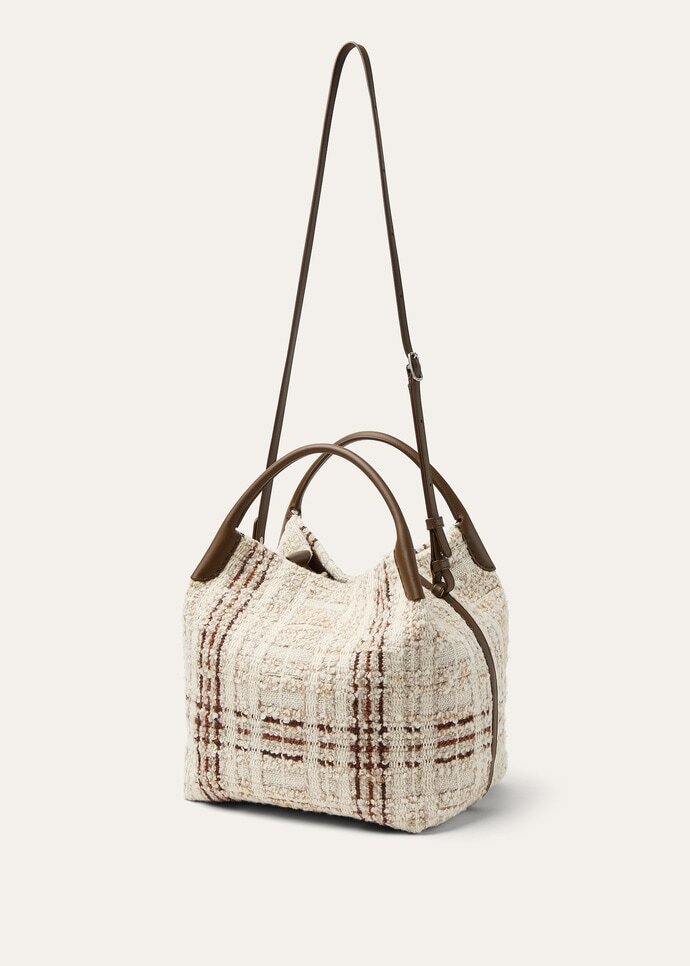 Inspired by Loro Piana’s cashmere bales – bundles of precious raw fiber – the Bale bag is a sophisticated bucket style steeped in the Maison’s rich textile legacy. With its sensorial touch, unique lightness, and seamless finish, this large edition is primed for everyday elegance and can be carried in the hand or over the shoulder. It is crafted from tactile Check Tweed with hand-stitched handles and a signature toggle fastening.